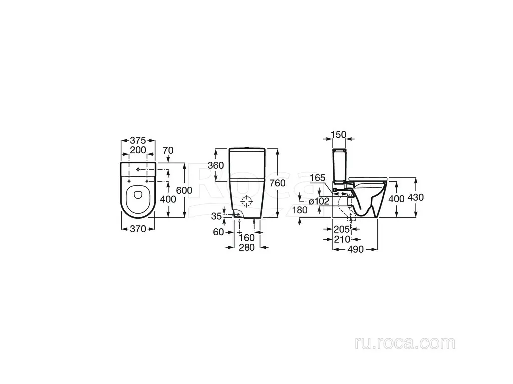 Чаша Roca Inspira Round напольная 600 Rimless, BTW, жемчужный 342529630