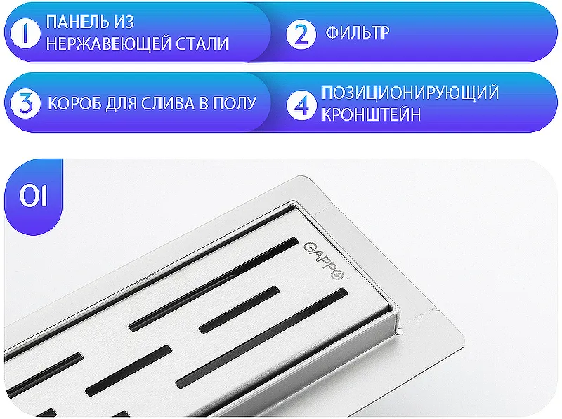 Душевой лоток Gappo G86007-1 с горизонтальным выпуском.