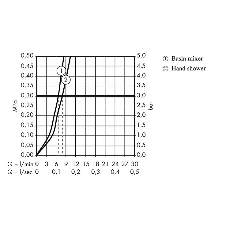 * Максимальный объем расхода воды при 3 барах: 5 л/мин.