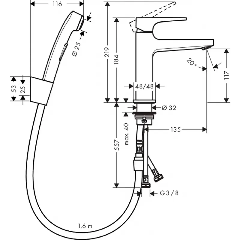 Смеситель для раковины Hansgrohe Metropol 32522000 с гигиеническим душем.