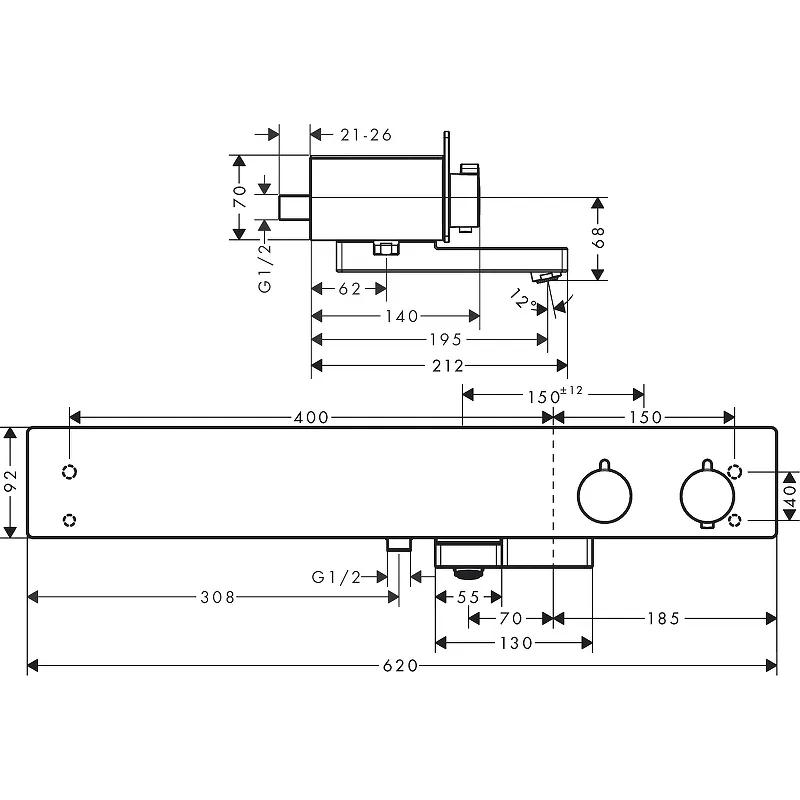 Смеситель для ванны Hansgrohe ShowerTablet 13109400 с термостатом.