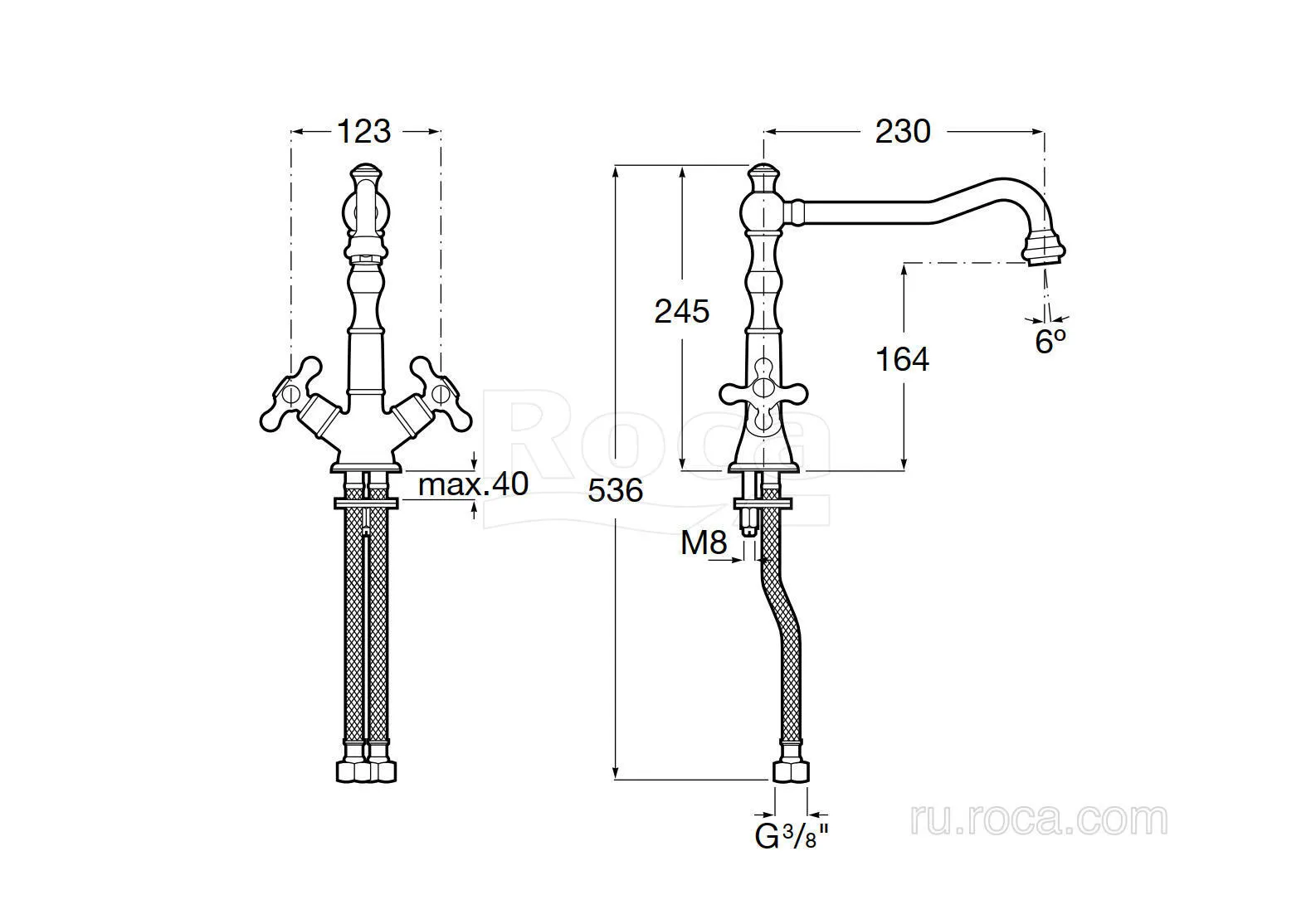 Roca Carmen Смеситель двухвентильный для кухни, хром