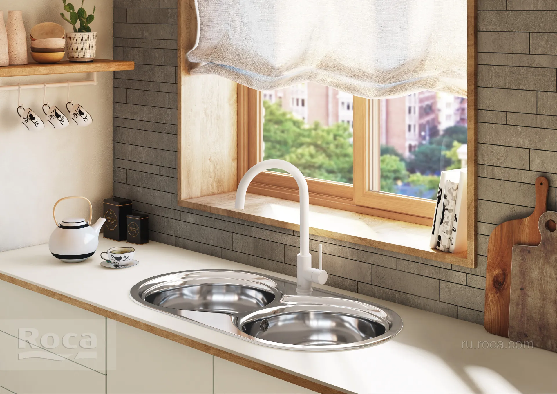 — Roca EverShine — хромированная поверхность, надежная защита от коррозии и ослепительный вид смесителей на всем протяжении срока эксплуатации.