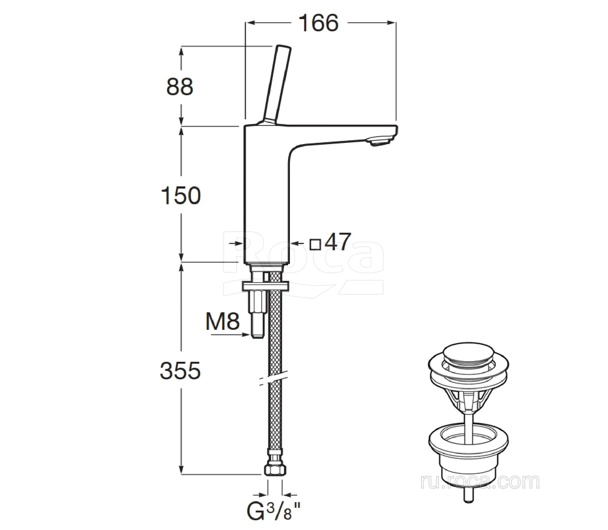 гарантийный талон, гибкая подводка, инструкция, монтажный комплект, нажимной донный клапан click-clack, Смеситель в сборе |